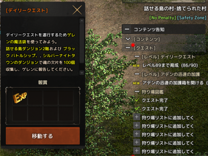 Lv90になるまでは「Lv89まで育成」というクエストがあって、これで話せる島に移動できるんスよね。